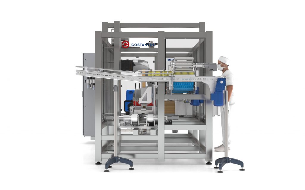 Para el formado de caja cuenta con un alimentador de cartones servocontrolado, un aplicador de Hotmelt marca Nordson y unos conformadores de caja que pueden ser en acero inoxidable o en ABS impreso en 3D, dependiendo de la complejidad del plegado de la caja.