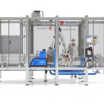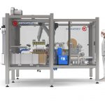 El encajonado automático de quesos con 2 robot es una unidad autónoma, compacta y de fácil instalación que está compuesta por varias partes, entre ellas, un bastidor confeccionado mediante una estructura soldada de caños estructurales y chapas, todos estos componentes de acero inoxidable. Dicha estructura esta provista también de un cerramiento perimetral de policarbonato transparente que permite una visualización integral de todos los componentes de la celda en pleno funcionamiento y un rápido acceso a la misma a través de sus puertas de ingreso. La celda esta provista de un HMI (Human Machine Interface) que le permite al usuario elegir el tipo de producto a encajonar y observar como la celda se ajusta automáticamente para el confeccionado de dicha tarea. Para el formado de caja cuenta con un alimentador de cartones servocontrolado, un aplicador de Hotmelt marca Nordson y unos conformadores de caja que pueden ser en acero inoxidable o en ABS impreso en 3D, dependiendo de la complejidad del plegado de la caja. Toda la manipulación de la caja es realizada por un robot marca Kuka y un gripper intercambiable, según la geometría de la misma. La manipulación y encajado del potes es confeccionada por otro robot marca kuka. Ambos grippers fabricados en acero inoxidable o fibra de carbono, con ventosas de aspiración de silicona marca Piab. Los potes ingresan por una banda modular Intralox y a través de diferentes cambios de velocidad, actuadores, ruedas de traspaso y demás manipulaciones, se conforma un mosaico de potes y se coloca a disposición del gripper. Por otro lado, al final en encajado, la caja completa sigue su curso y pasa por una estación de cerrado mediante la cual, a través de cinta o aplicación de hotmelt, la caja se cierra definitivamente y sale de la encajonadora, poniéndose a disposición del paletizado de la misma.